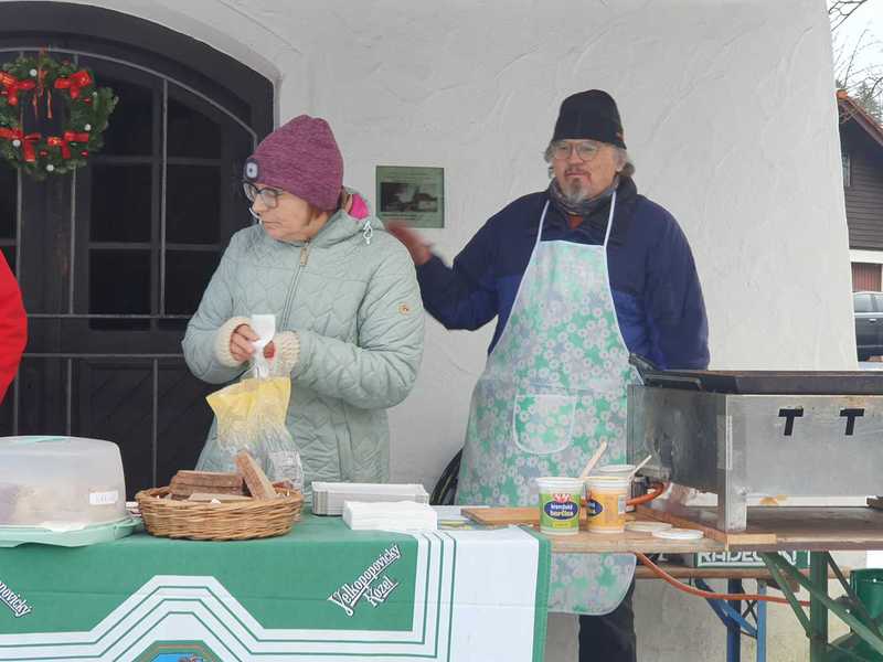 Auf den kulinarischen Aspekt der Schlossweihnacht legten die Mitglieder des Förderkreises erneut viel Wert, weil sie sich einerseits dem Vermächtnis der großen und populären Kochbuchautorin Erna Horn, die 40 Jahre lang hier gelebt und gearbeitet hat, verpflichtet fühlten und andererseits in der Wiederbelebung dieser Tradition auch die Zukunft von Schloss Buchenau liegt. So wurden bis auf die Bratwürste alle Speisen und Getränke in der Schlossküche selbst zubereitet. Und das Fleisch für die Würste stammte von den Schwäbisch-Hällischen Schweinen des Biohofes Scherm.