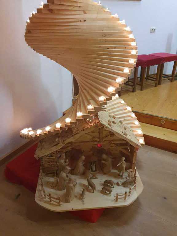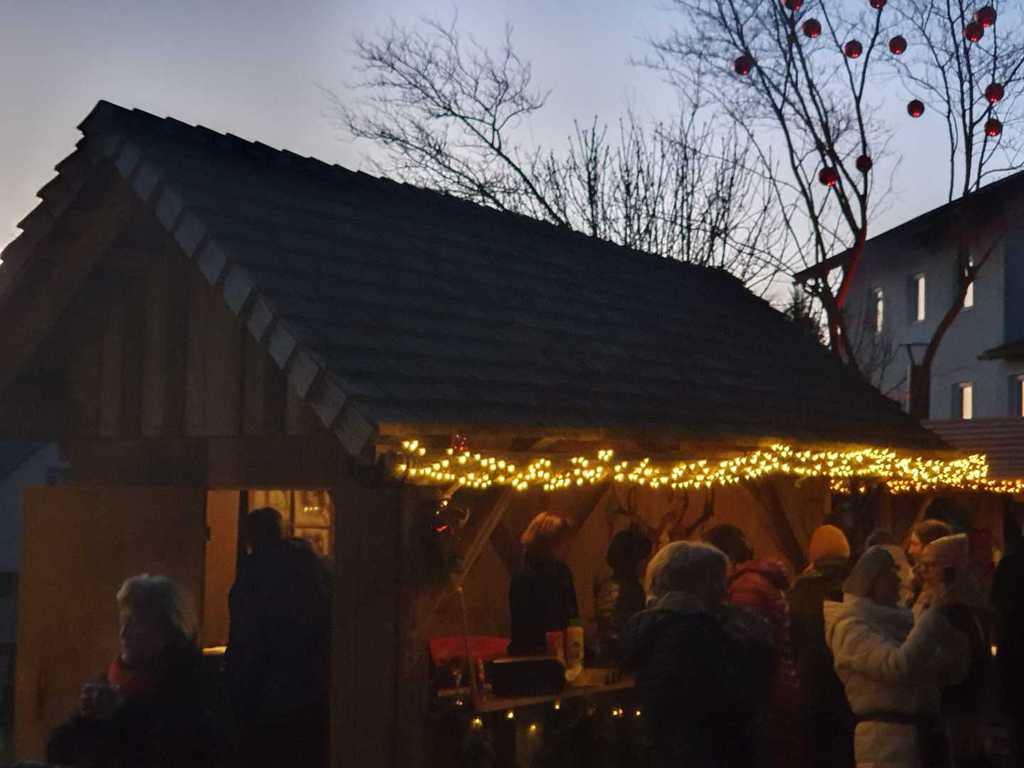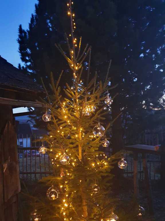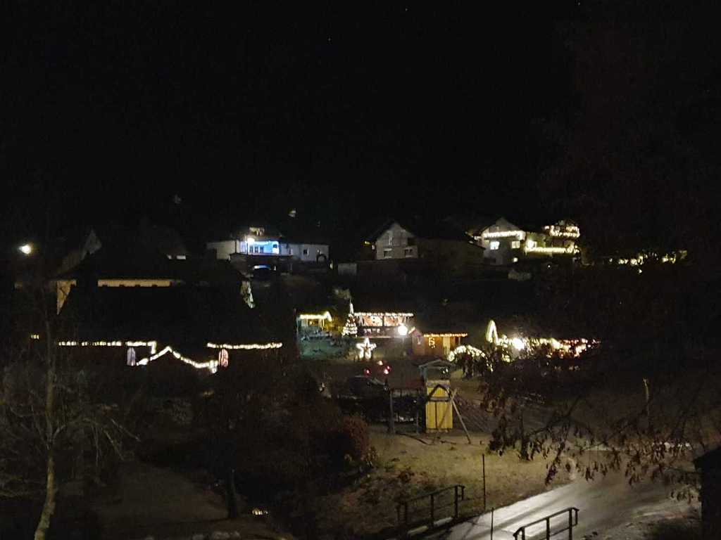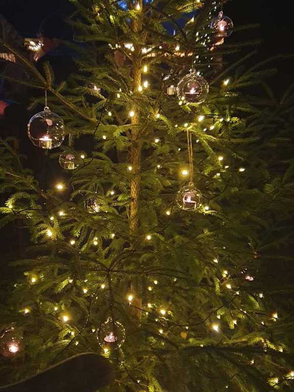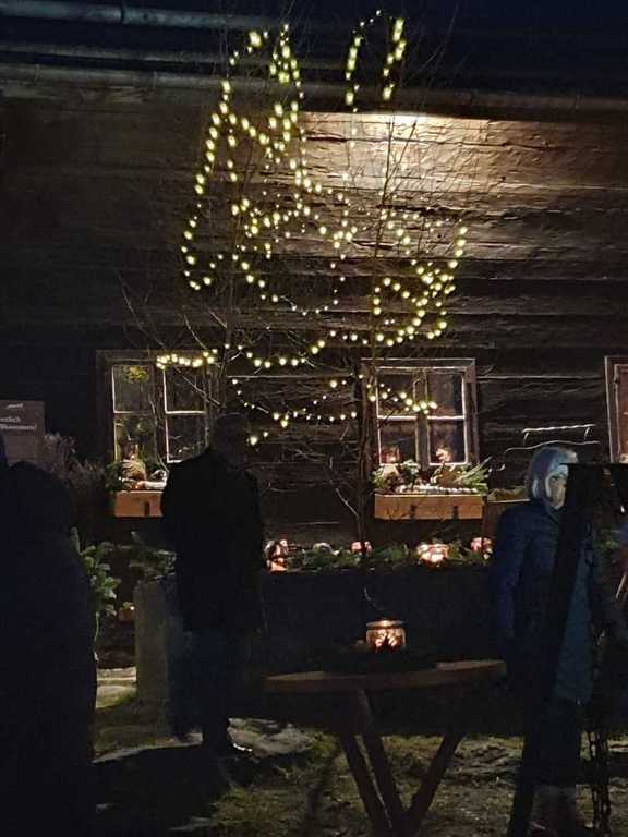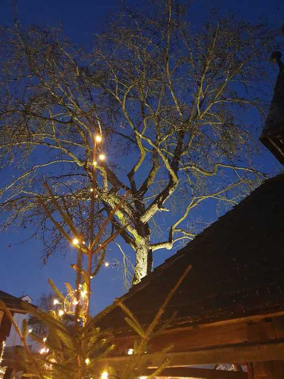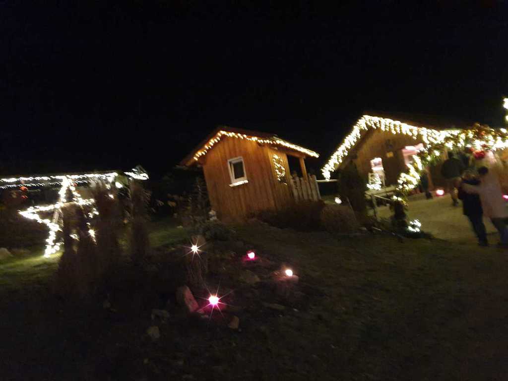 Weihnachtsgeschichte und zum alten Bienenhaus, das an das Hexenhäuschen aus „Hänsel und Gretel“ erinnert. Am Übergang zu den Streuobstwiesen grüßte der wiedererrichtete, hell erleuchtete, historische