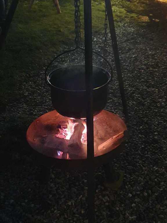 Waffeln und Crepes mit verschiedenen Füllungen und eine deftige, kurz gewürzte ungarisch-scharfe Gulaschsuppe aus einem Kessel über offenem Feuer in der Mitte des Platzes. Mit geschmackvollem