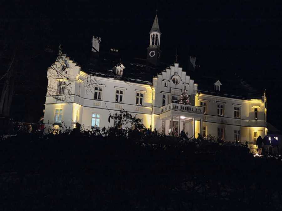 Konnte gut sein, dass bei der Schlossweihnacht in Buchenau, der Nikolaus, der Krampus und das Christkind gleichzeitig zwischen den hohen Bäumen neugierig hervorlugen, weil die Attraktivität des Weihnachtsmarktes in Buchenau sich nicht nur auf der Erden, sondern auch schon im Himmel herumgesprochen haben soll. Es gab keine Augenzeugen. Die Stille, die vom Schnee verzauberte Parklandschaft, das Ruhigere, die märchenhaften Eindrücke standen in Buchenau im Mittelpunkt. Dazu das weiße Schloss hell erleuchtet, der Schein von hundert Kerzen schaffte eine heimelige Atmosphäre, Laternen und Lichtpyramiden, die glänzenden Glaskugeln und die vielen kleinen Feuer im Park locken die Besucher ins schneeverschneite Schloss.