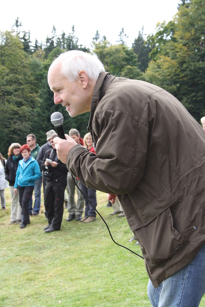 Eine besondere Ehre für alle Teilnehmer war, dass sich der Leiter des Nationalparks Bayerischer Wald, Dr. Franz Leibl, eingefunden hat. Ihm gilt der Dank des Bayer. Wald-Vereins für die stets harmonische Zusammenarbeit und die großzügige Unterstützung durch die Nationalparkverwaltung sowohl personell wie auch finanziell. Wie Dr. Leibl in seiner Ansprache betonte, wird der Schachtenpflege-Aktion von Seiten des Nationalparks eine wichtige Bedeutung beigemessen. Für seine Verdienste um die Schachtenpflege hat er den scheidenden Vorsitzenden des Naturschutzbeirates des Bayer. Wald-Vereins, Georg Jungwirth, mit einem herzlichen Dankeschön bedacht und ihm ein Geschenk überreicht.