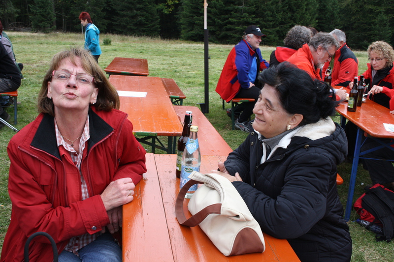 Erste längere Haltestation fürs Mittagessen war die Thurner Hütte, wo Surhaxe, Wildgulasch, Bachforelle oder Waldbeeren-Knödel auf die hungrigen Wanderer warteten. Ein helles oder dunkles Tschechen-Bier inclusive.