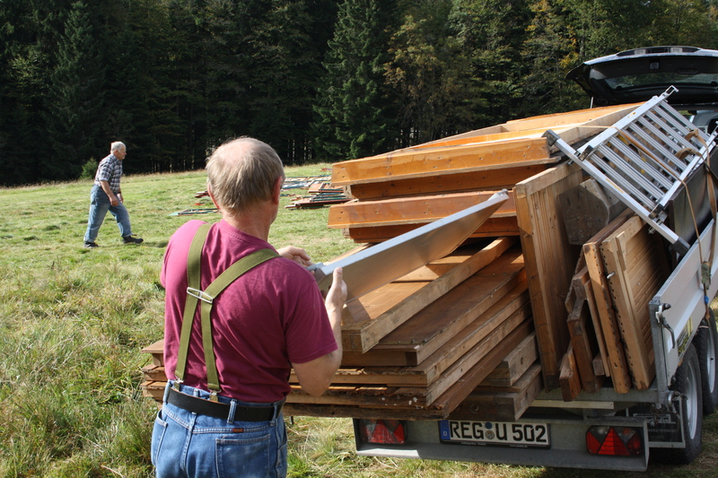Damit die Schachten auch für spätere Generationen erhalten werden, lädt der Bayer. Wald-Verein jährlich einmal zur Schachtenpflege-Aktion ein. Und wirklich, mehr als 80 Frauen und Männer sind gekommen, um, ausgerüstet mit Motorsäge, Motorsense und anderem Gerät, die Schachtenflächen von größeren Bäumen Jungwuchs, Gestrüpp und überhandnehmenden Heidelbeersträuchern zu befreien. Um dabei das Ziel, die Entwicklung einer Borstgrasrasen-Gesellschaft zu fördern, darf das Schnittgut nicht an Ort und Stelle liegen bleiben, sondern muss sogleich an den Rand der Pflegefläche verfrachtet werden. Gerade in der wärmenden Herbstsonne allesamt schweißtreibende Tätigkeiten.