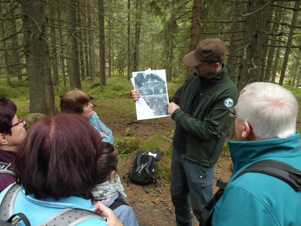 Bečka gab mit anschaulichem Kartenmaterial und vielfältigen Informationen an unterschiedlichen Haltepunkten Informationen über den Flusslauf der Vydra, die biologische Vielfalt und die geologischen Formationen. Er informierte auch über die Geschichte der Nationalparke und ihre unterschiedlichen Konzepte, vor allem auch mit dem Borkenkäfer umzugehen.
