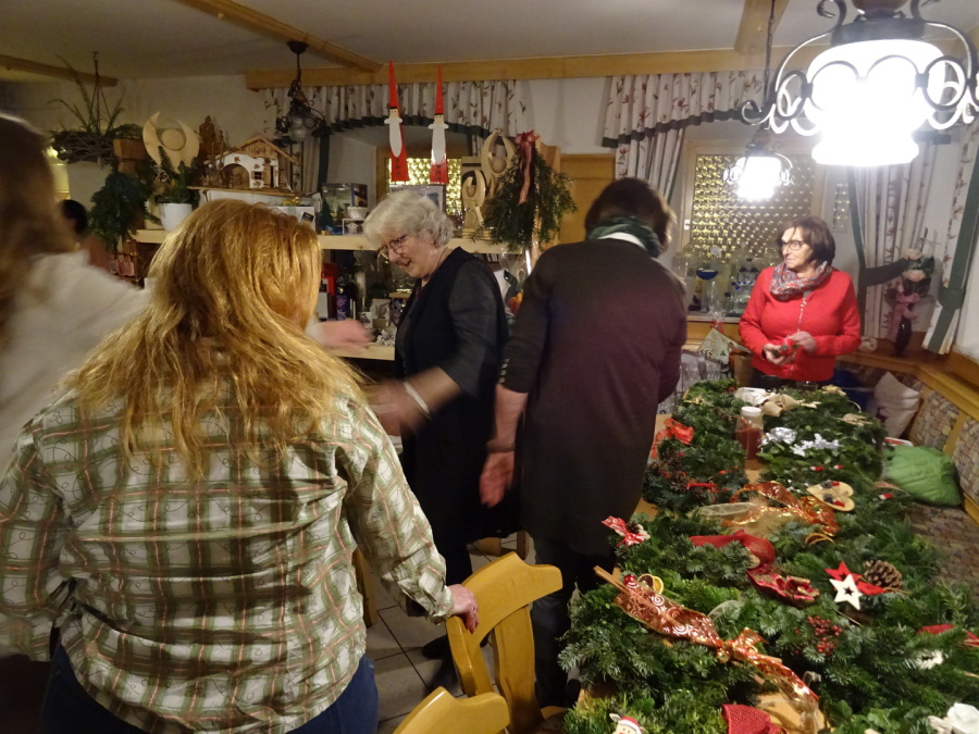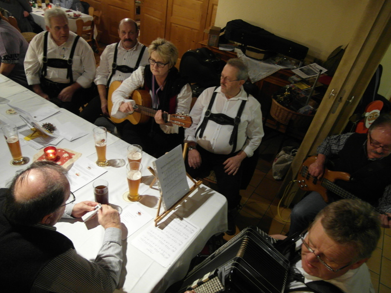 Die Wirtsleute Irene und Herbert Huber boten professionell das leckere Büffet-Weihnachtsmenü mit Ente, Apfel-Blaukraut und Semmelknödeln an, das jedermann vorzüglich mundete. „Euch allen ein ganz, ganz herzliches Dankeschön!“, sagte Günther Hannes seinen Aktiven, die wie in jedem Jahr 250 Preise für die üppige Weihnachtstombola gebacken, gebastelt, gemalt, getöpfert und gespendet hatten, namentlich Maria Baumann, Liselotte Brandl, Vaclav Chabr, Vera Drahoradova, Erhard Ganserer, Ulrike Haushofer, Otto Kieslinger, Rosi Klimkewitz, Xaver Raith, Frieda und Max Schmid, Elisabeth und Norbert Schreiber, Ursula Steiml und Brigitte Straub. So mancher Gast konnte so also mit genügend Losglück einen farbigen Nikolaus, Engel oder Schneemann aus Holz mit nach Hause nehmen, und alle waren sich einig trotz des inzwischen wieder einsetzenden Regen- und Tauwetters: „Freue dich ‘s Christkind kommt bald.“ Wenn es eben sein muss, auch bei Regenwetter. ns